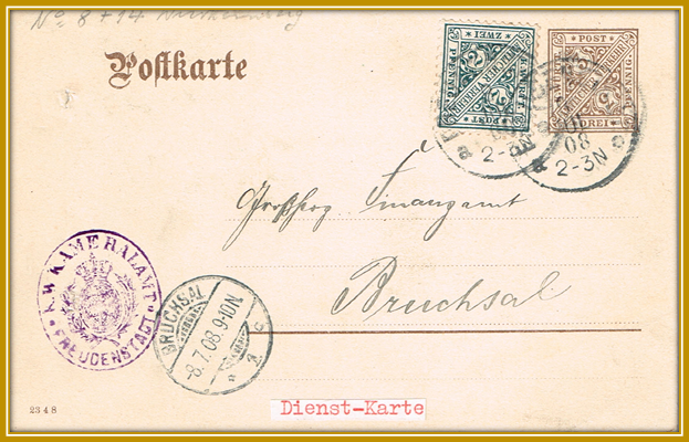 - Stempel Postamt Bruchsal 8.7.1908 9-10N