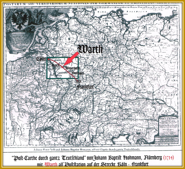 Postlinie Köln – Frankfurt mit Station „Warth“.