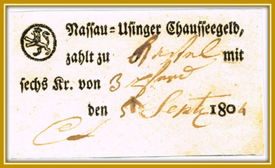 1804: 6. September, Chausseegeld-Quittung der Grafschaft Nassau-Usingen.