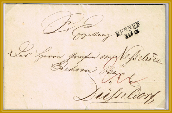Briefbeförderung der Königl. Preuß. Post ab Hennef 1826