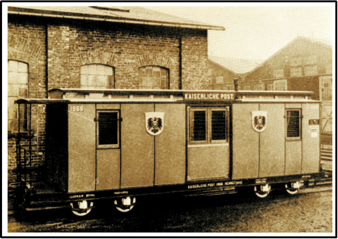 Ab 1878 konnte die Bahn auch für Postzwecke benutzt werden. Für die Postbearbeitung waren entsprechende Arbeitsplätze in den Personenwagen eingerichtet. Erst ab 1898 stand ein Bahnpostwagen für die Postbearbeitung zur Verfügung.