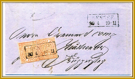 portogerecht 1 Sgr. (2 x 1/2 Sgr. orange, 2. Ausgabe)