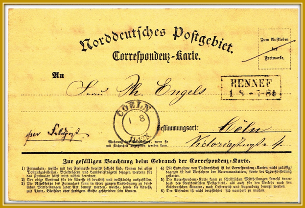 1870: 1. August, die erste deutsche “Correspondenzkarte Norddeutsches Postgebiet.”