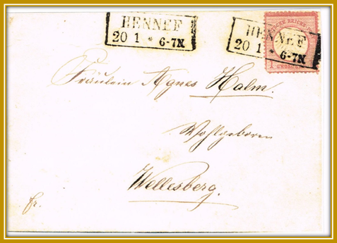 1872: 20. Januar, Brief von Hennef nach Wellesberg