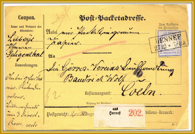 von Hennef nach Köln, 1 Paket 2 Pfund, portogerecht