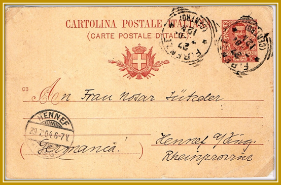 1904: 27. Juli, Portkarte aus FIRENCE (Florenz), KÖNIGREICH ITALIEN, Aufgabe: “12 N"