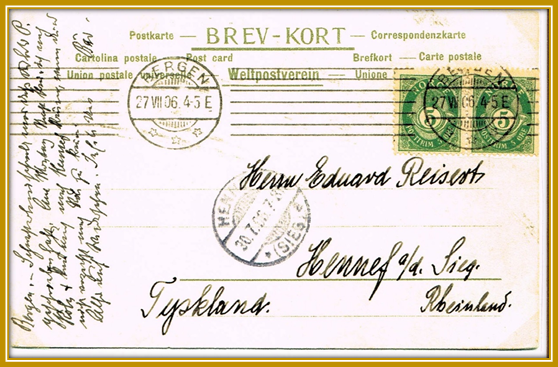 1906: 27. Juli Bildpostkarte aus Bergen (Norwegen) nach Hennef