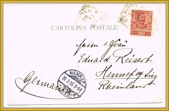 1905: 28. März, Ansichtspostkarte aus Rom (Italien) nach