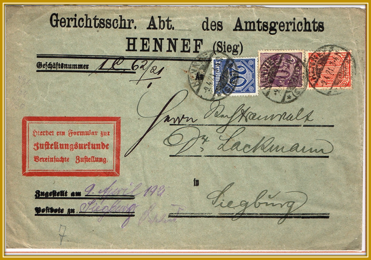 Portopflichtiger Dienstbrief des Amtsgerichts Hennef