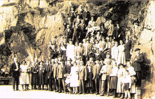Ausflug der Bediensteten des Postamts Hennef im Sommer 1930 ins Siegtal. Teilnehmer u.a. Wilhelm Pützstück (1873-1955), Landbriefträger, Bahnpostbeamter auf der Bröltalbahn und bis zur Pensionierung Posthalter in Bröl (Geschenk seines Enkels, Herrn Friedhelm Pützstück, Bröl)