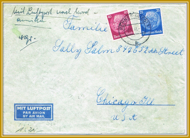 Luftpostbrief von Hennef nach Chicago/ USA (im April 1941 war