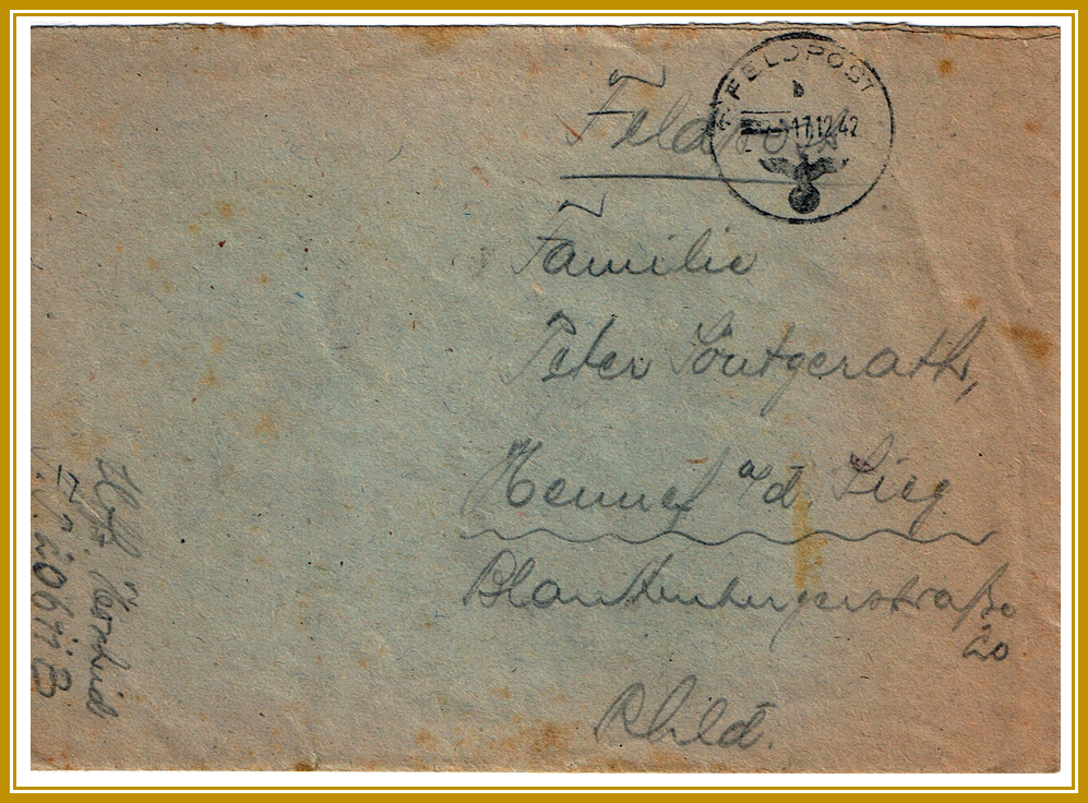 , 17. Dezember; Feldpostbrief von der Feldpoststelle F.P.206iiB nach Hennef a.d. Sieg.