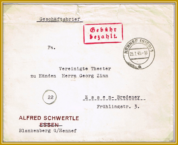 “Geschäftsbrief” von Hennef-Blankenberg nach Essen-Bredeney