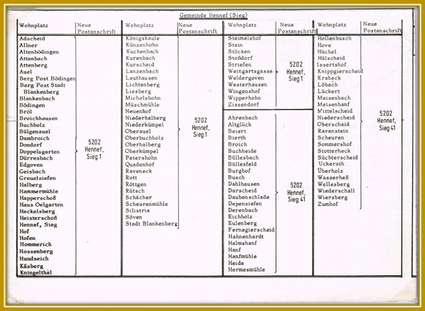 Auszug aus der Informationsschrift der Deutsche Bundespost: "Neue Postanschriften ab 1.10.1970 in Städten und Gemeinden”