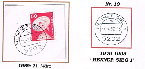Ab 1979 wurde zum Stempel Nr. 18 mit den Nummern a, b, c, d, í ein leicht geänderter Stempel mit den Nummern j; g, j, k, m, n, o verwendet. Bei diesem Stempel war „Sieg“ nicht in Klammern gesetzt, sondern vom Ortsnamen mit einem Komma getrennt.