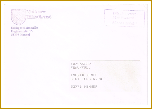 Infopost des Malteser Hilfsdienst gelaufen von 53773 Hennef nach 53773 Hennef.