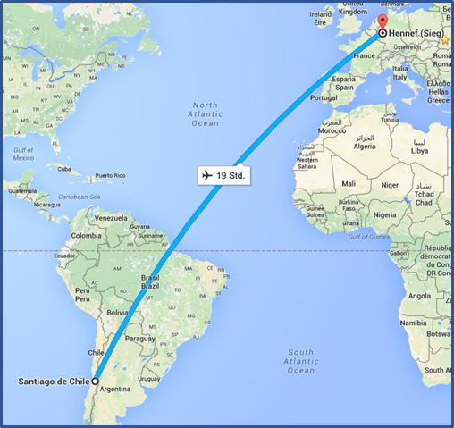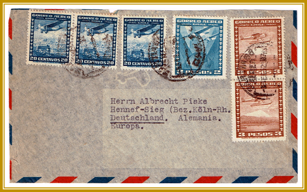 1952, 3. September. Flugpostbeleg gelaufen von Santiago de Chile in Chile nach Hennef,