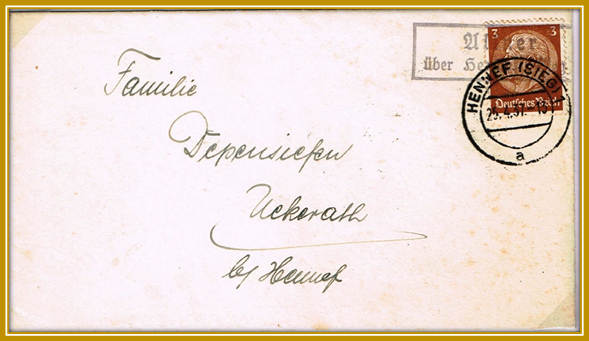 1937: 25. April, Drucksache von Allner nach Uckerath, portogerecht 3 Rpfg. Braun