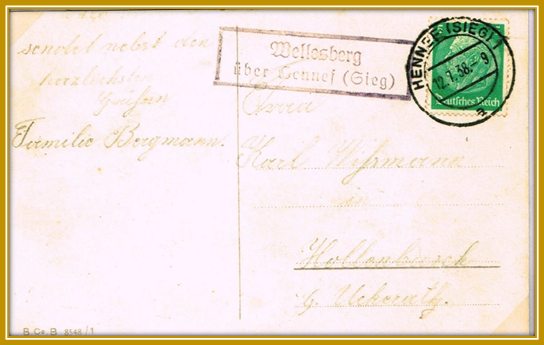 1938: 12. Juli, Postkarte von Wellesberg nach Hollenbusch bei Uckerath Unterfrankatur 5 Rpfg. hellgrün (unbeanstandet)