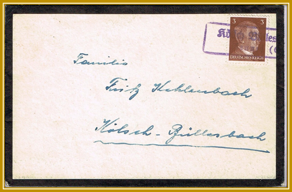 1944: 11. November (aus dem Inhalt ersichtlich) Drucksache im Ortsverkehr Kölsch-Büllesbach, portogerecht 3 Rpfg. Braun.