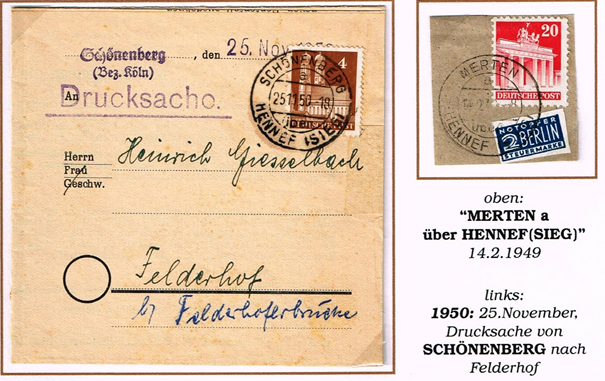 1950: 8. November, Brief vom Winterscheid nach Siegburg portogerecht 20 Dpfg. + 2 Dpfg. Notopfer Berlin, “WINTERSCHEID -01.11.1950. über HENNEF (SIEG)"