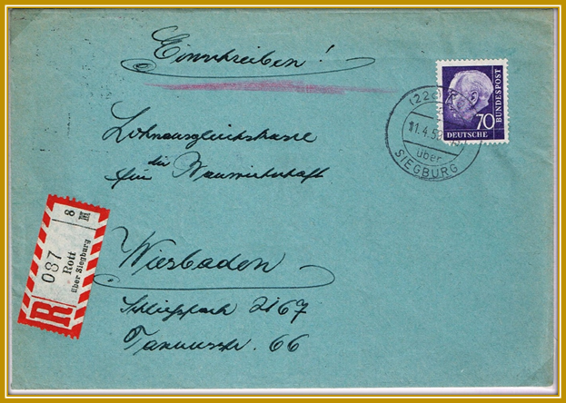 Einschreiben-Brief von Hennef-Rott nach Wiesbaden,