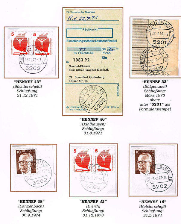 6.9.8 Kreisstempel der Hennefer Poststellen mit 4-stelliger PLZ 5202 von 1969 – 1993 (03)