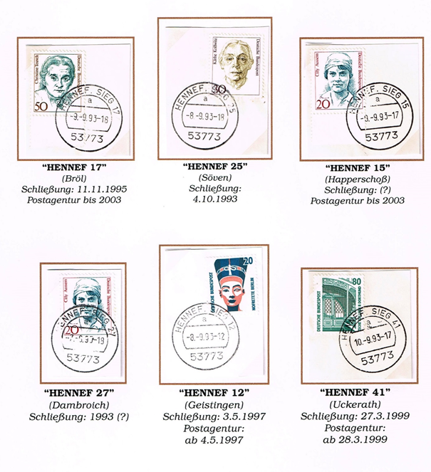 Previous article: 6.9.9 Kreisstempel der Hennefer Poststellen mit 5-stelliger PLZ 53773 ab Juli 1993 (01)
