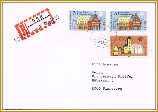 1978: 1. Juli, Einschreiben-Brief von Stossdorf nach Pinneberg, portogerecht 1,90 DM, Kreisstempel: “5202 HENNEF (SIEG) 13", Handstempel: “5202 Hennef, Sieg 13"