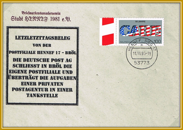 unten: 11. November 1995 Poststelle 1 7 (Hennef Bröl) |