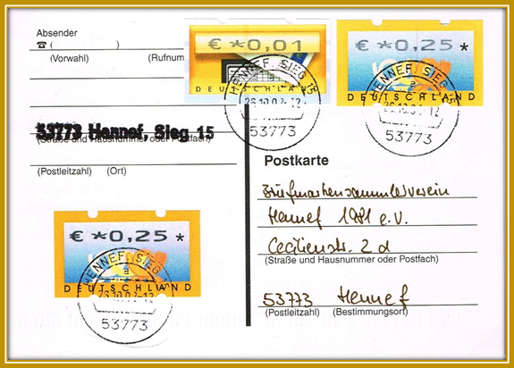 6.9.9 Kreisstempel der Hennefer Poststellen mit 5-stelliger PLZ 53773 ab Juli 1993 (09)