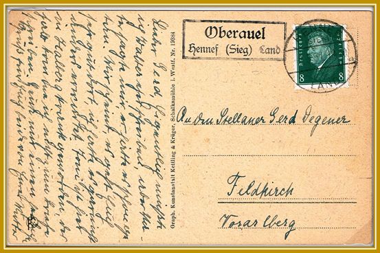 1931: 8. Mai, Postkarte von Oberauel (Landkraftpost-Tour II) nach Feldkirch,
