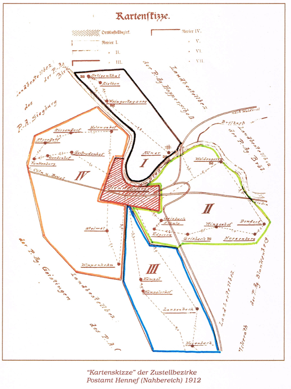 Zustellbezirke Postamt Hennef (Nahbereich) 1912