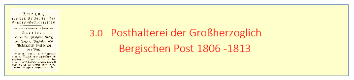 1806 – 1813 Christian Jakob Halm (ehemaliger Thurn u. Taxisscher Posthalter) wurde auch Posthalter für die Großherzgl. Bergische Post. |