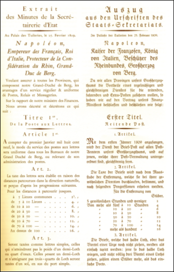 Gesetz zur Errichtung der “Grhrzgl. Berg. Post” am 25. Februar 1809 (Gründung am 6. August 1806)