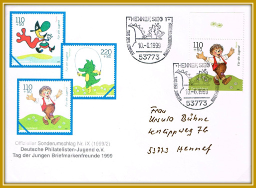 Oben: „Tag der jungen Briefmarkensammler“ Hennef 10.6.1999 (W 8) Unten: 62. Verbandstag Phil. Verband Mittelrhein 2.4.2000 (W 7) |