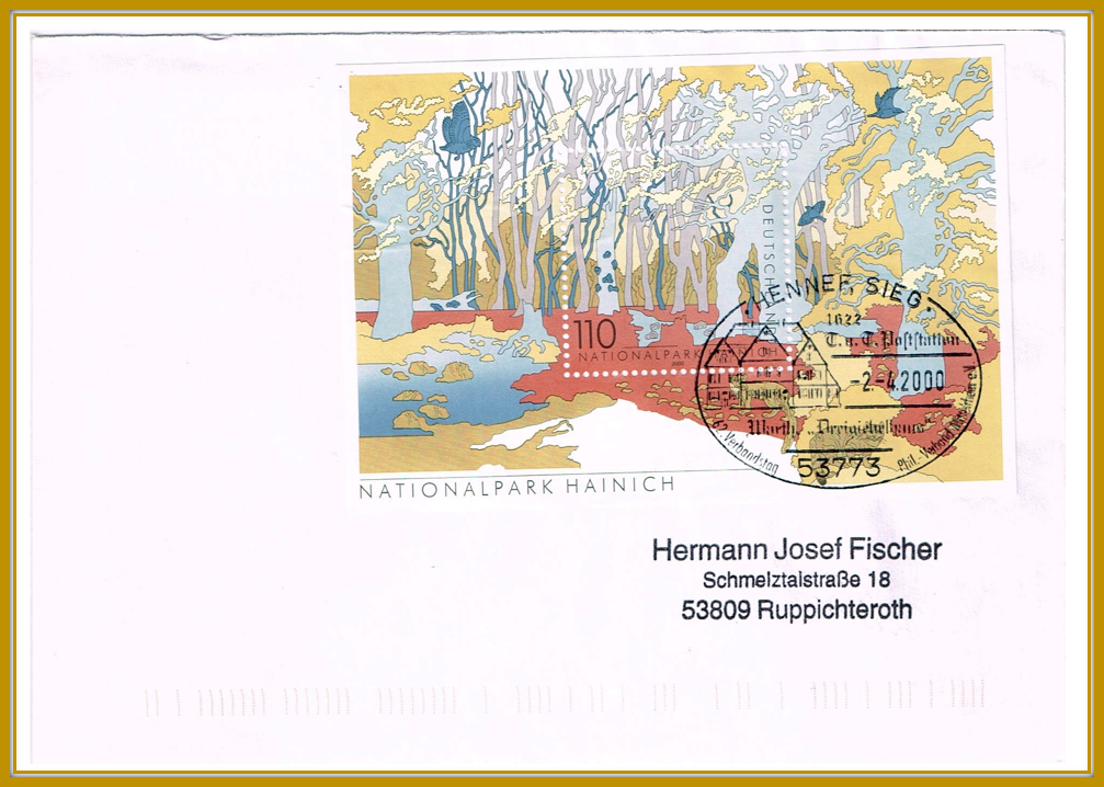 Oben: 2000, 2. April: Brief mit Sonderstempel