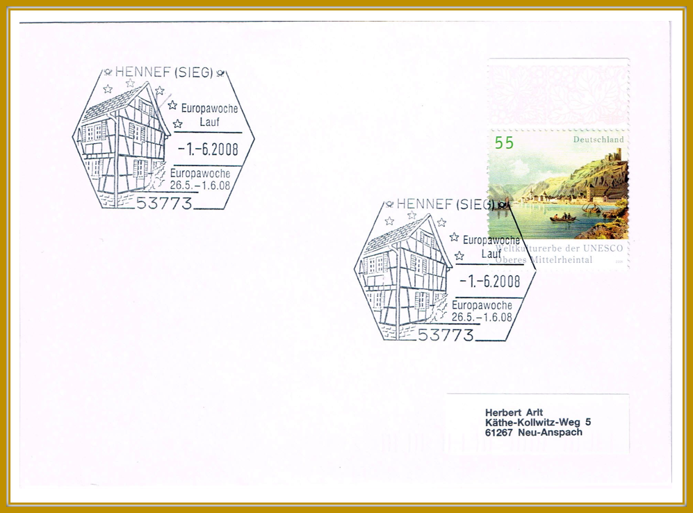 Oben: 2008, 1 Juni: Sonderstempel Europawoche.