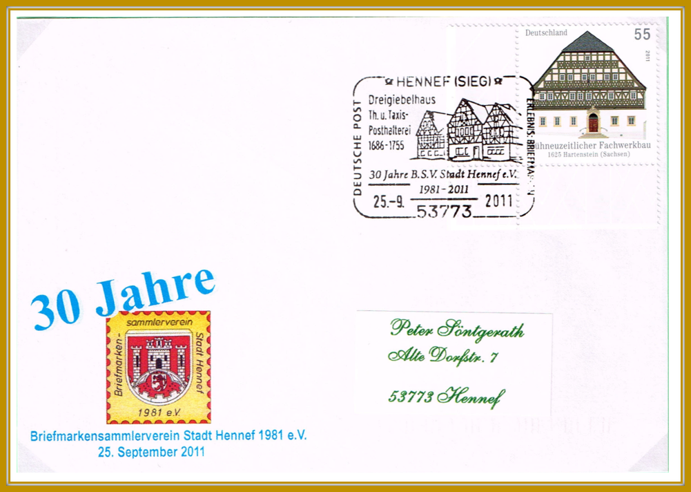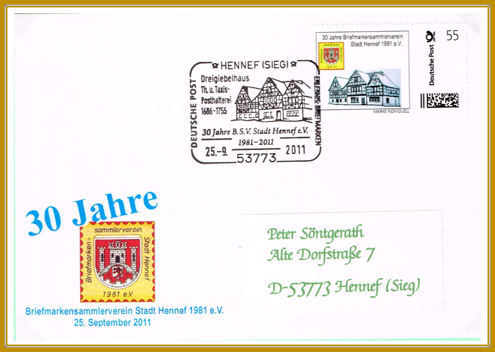 2011, 25. September: Sonderstempel zum 30-jährigen Bestehen des BSV Hennef (oben und unten)