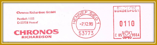 1999, 7. Dezember. Freistempler mit Aufdruck „60 Pf“ der Firma Chronos
