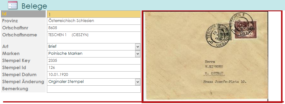 Zu diesen Belegen werden dann die folgenden Informationen neben einem Scan in der oben genannten MS Access Datenbank gespeichert:- Ortschaftsname mit zugehöriger Id in der Datenbank
